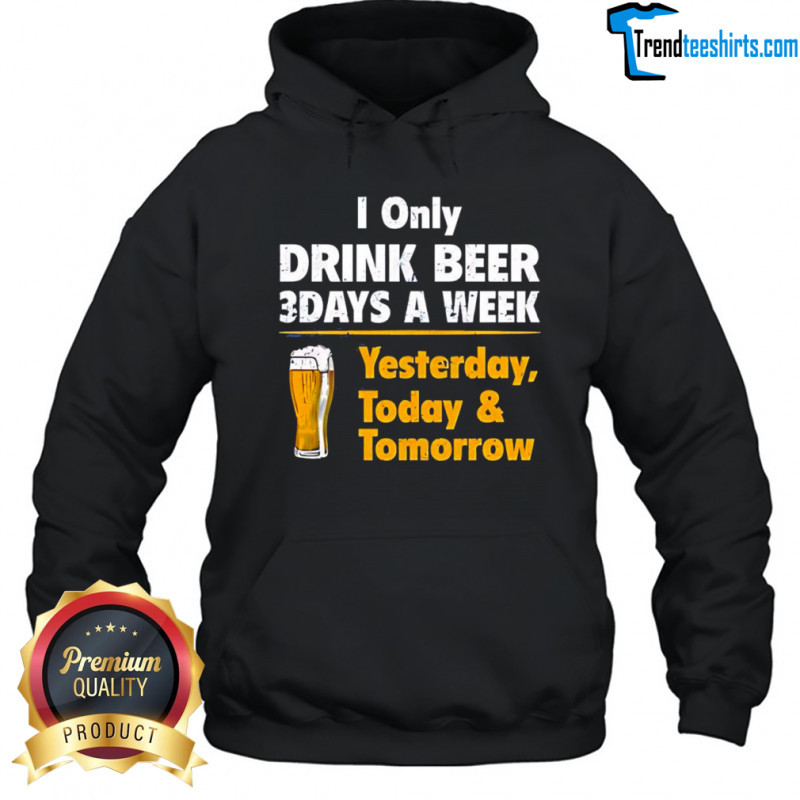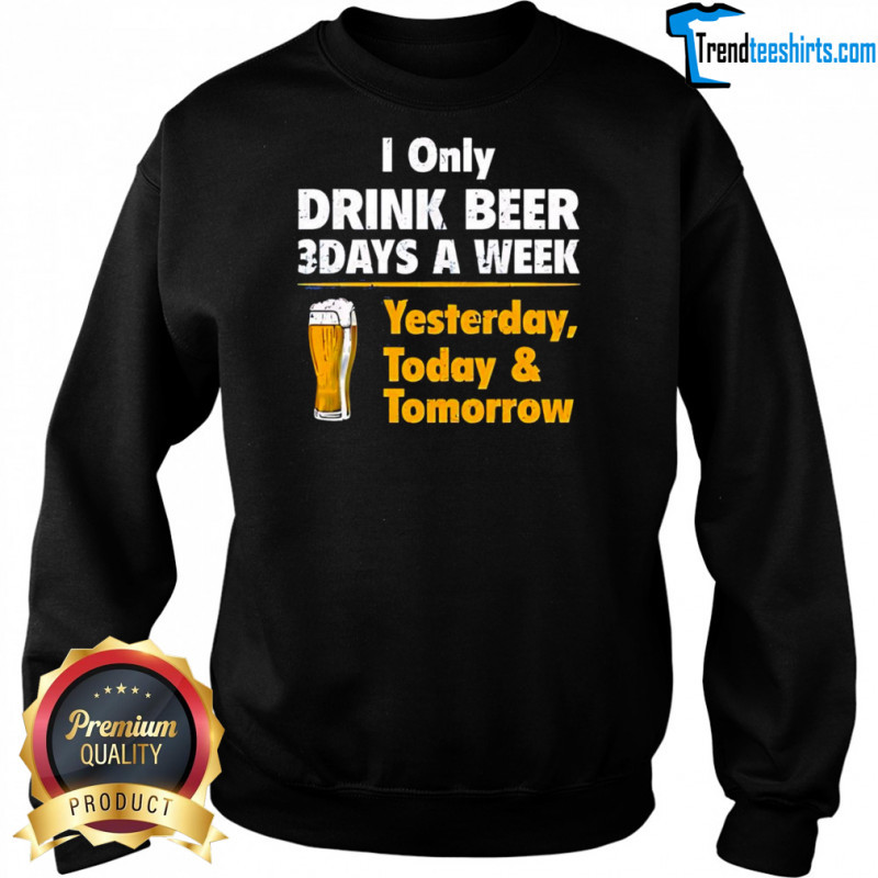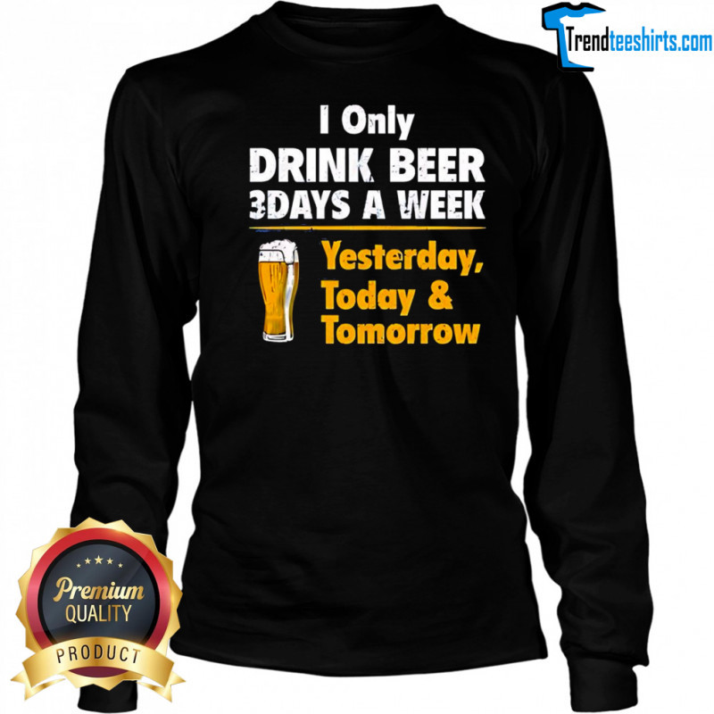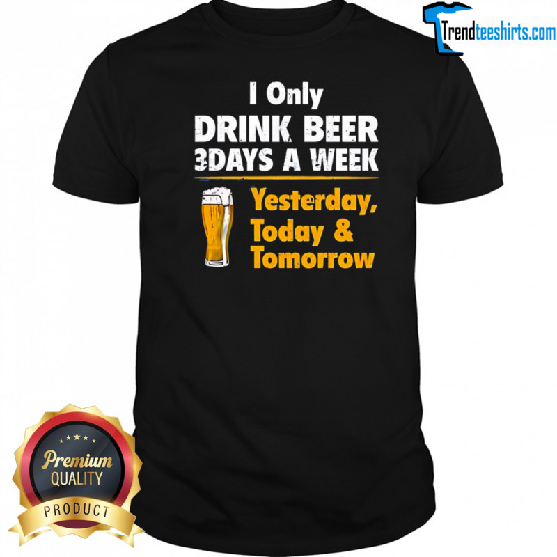 Buy here: I Only Drink Beer 3 Days A Week Yesterday Today & Tomorrow yellow line shirt, hoodie, sweater, longsleeve and ladies t-shirt