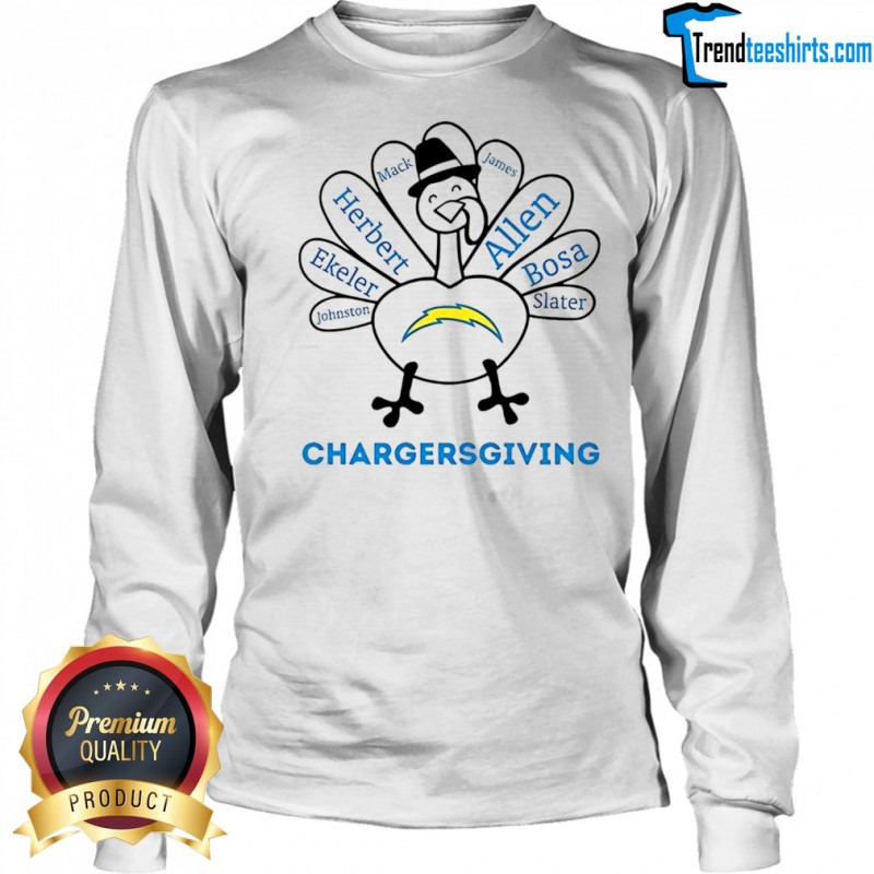 As you gather around the table this Thanksgiving, let the Los Angeles Chargers turkey Chargersgiving Thanksgiving with heroes shirt be a reminder of the cherished moments spent with loved ones and the heroes who make a difference in your life. Whether you’re cheering for your favorite team or simply spreading gratitude, this shirt is a statement of appreciation and unity. Embody the spirit of togetherness and thankfulness with every wear. Don’t miss the chance to own this limited edition shirt that celebrates both your team and the heroes in your life. Elevate your Thanksgiving attire and spread the message of gratitude with every step you take. Purchase yours today and wear your gratitude proudly!