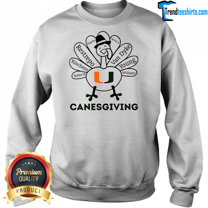 Get ready to show off your Miami Hurricanes pride in style this Thanksgiving with the limited-edition Miami Hurricanes turkey Canesgiving Thanksgiving with heroes shirt. Embrace the spirit of gratitude and unity with this exclusive design that celebrates both the holiday season and your favorite team. Crafted with premium quality materials, this shirt is as comfortable as it is eye-catching. The vibrant colors and intricate details pay homage to the heroes on and off the field, making it a must-have for any die-hard Hurricanes fan.