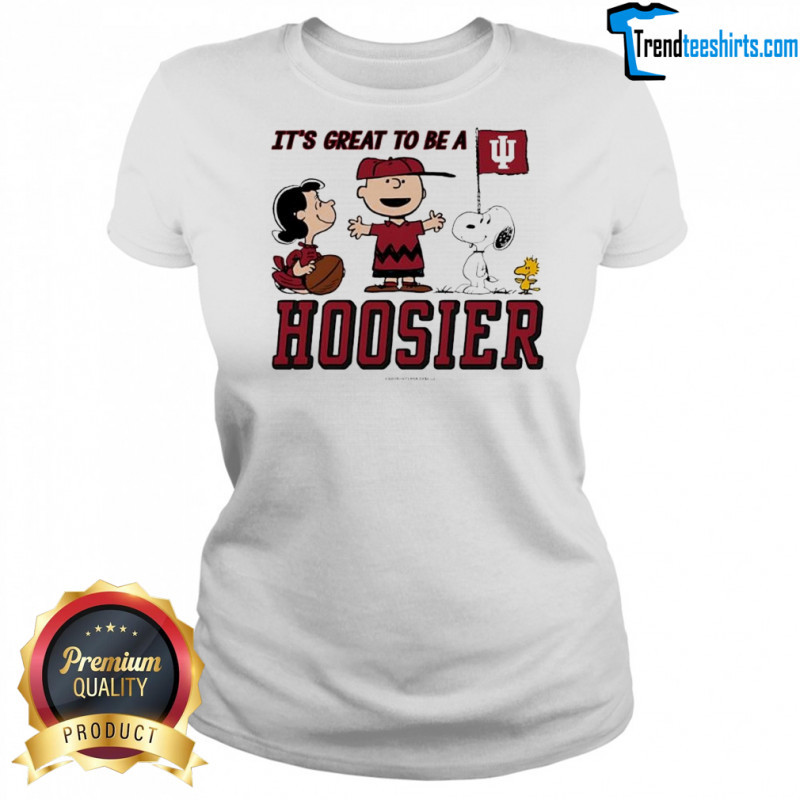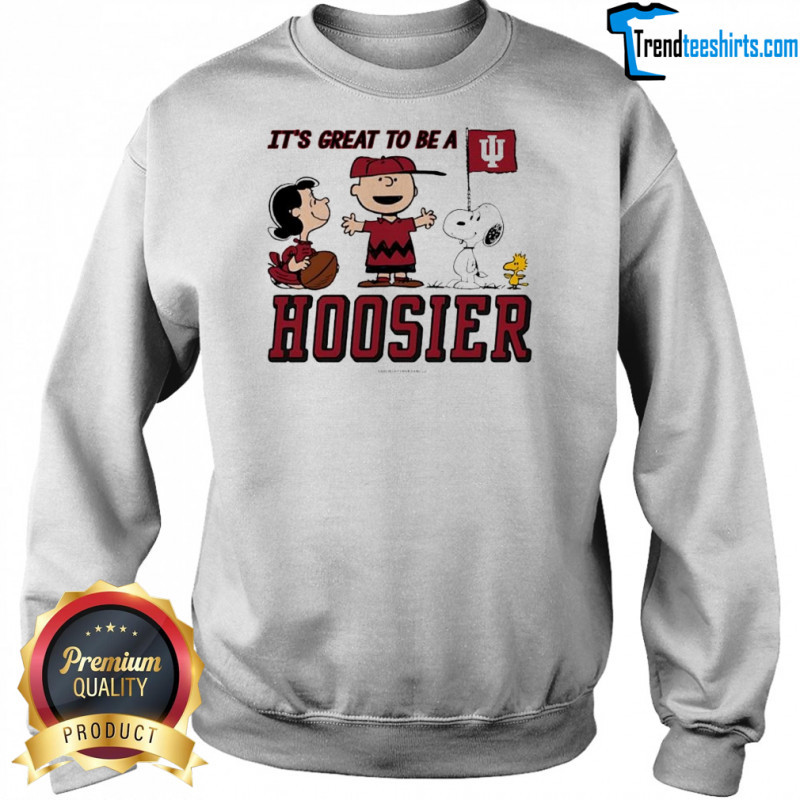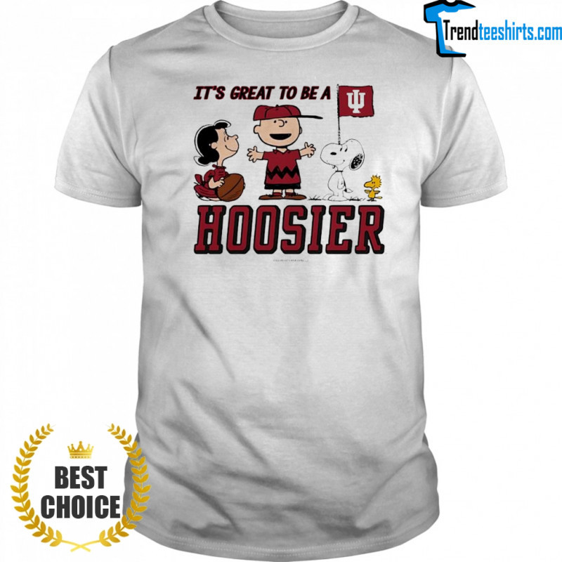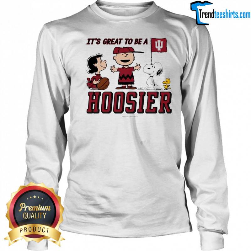 Buy here: Peanuts Characters x Indiana Hoosiers It’s Great To Be A Hoosier shirt, hoodie, sweater, longsleeve and ladies t-shirt