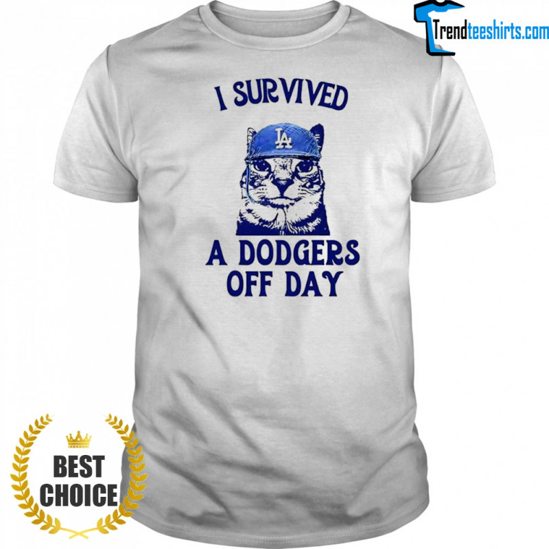 Ready to add a touch of humor and style to your everyday look? Don’t miss out on the chance to own the A Dodgers Day Off I Survived Cat meme shirt! Elevate your casual outfit game with this fun and trendy tee that guarantees to turn heads and spark joy wherever you go. Embrace the playful side of fashion and let your personality shine through with this unique piece. Whether you’re running errands, hanging out with friends, or lounging at home, this shirt is bound to keep you feeling cool and confident. Treat yourself to a dash of whimsy and grab your own A Dodgers Day Off I Survived Cat meme shirt today!
