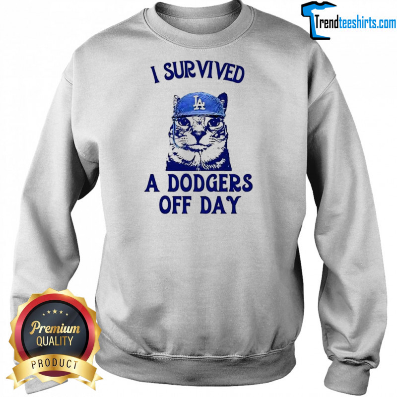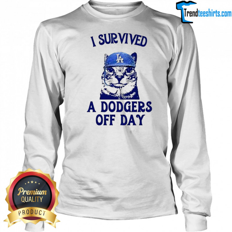 Buy here: A Dodgers Day Off I Survived Cat meme shirt, hoodie, sweater, longsleeve and ladies t-shirt