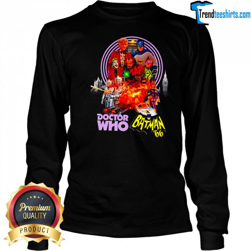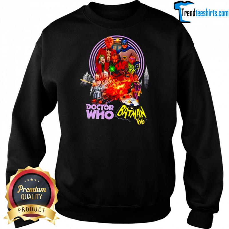 Buy here: Doctor Who Batman TV series crossover characters graphic shirt, hoodie, sweater, longsleeve and ladies t-shirt