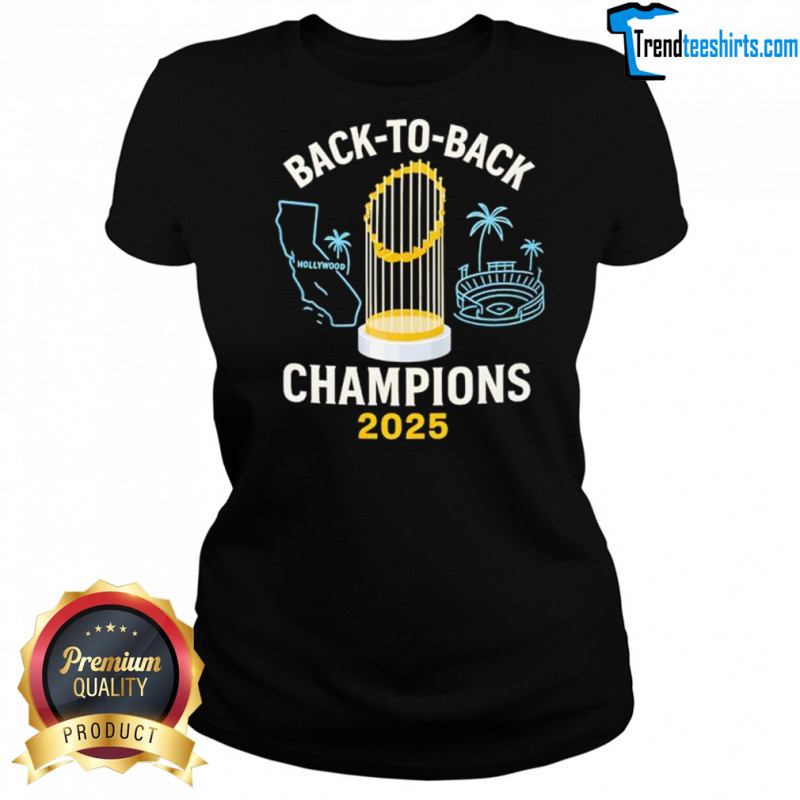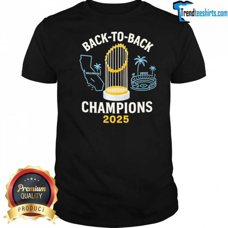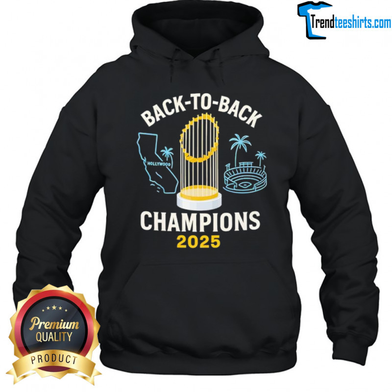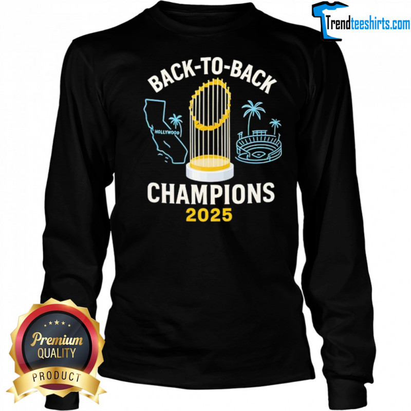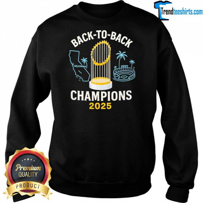 Buy here: Los Angeles Dodgers back to back Champions 2025 Hollywood shirt, hoodie, sweater, longsleeve and ladies t-shirt