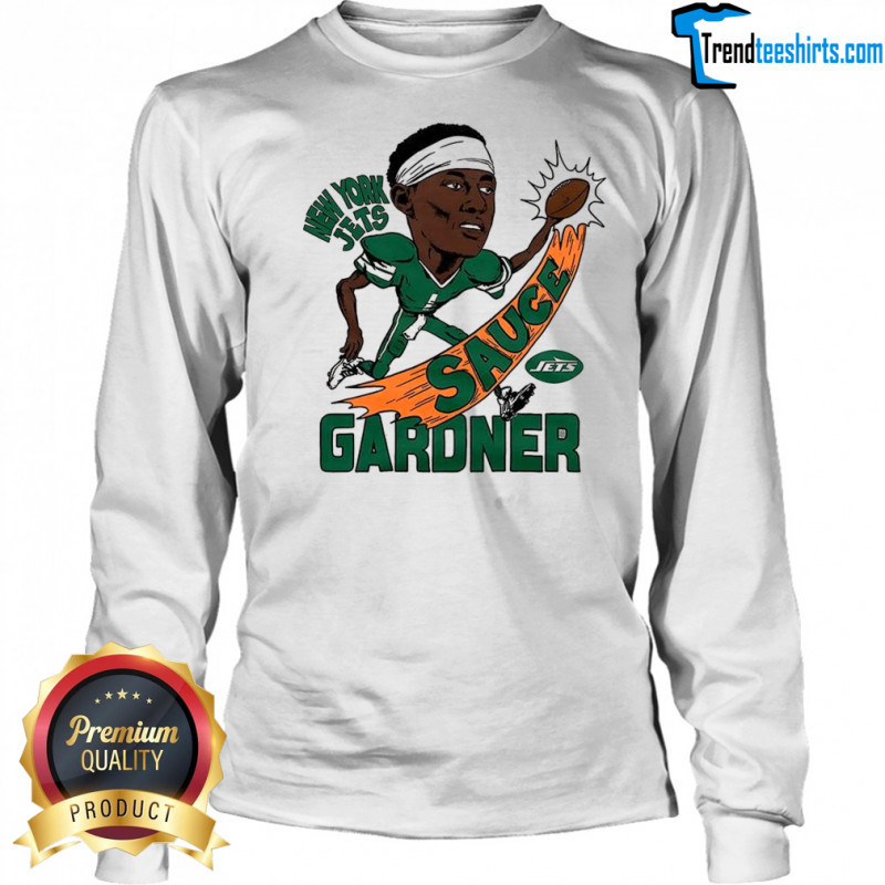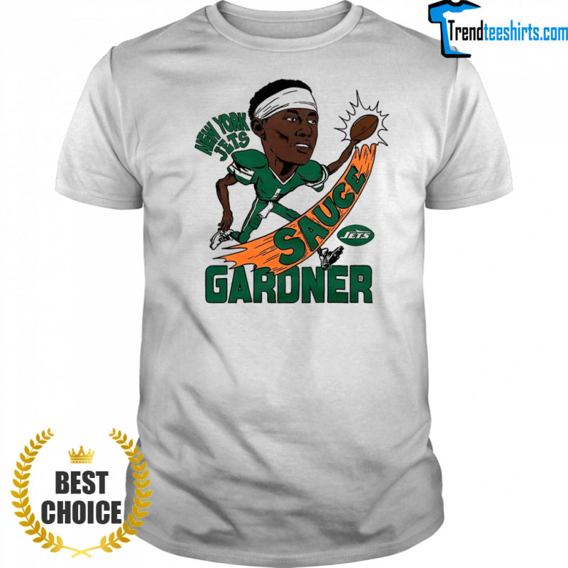 Gear up like a true fan with the Sauce Gardner New York Jets football catch shirt! This exclusive shirt embodies the electrifying essence of the game, capturing the spirit of every breathtaking catch. Crafted with premium quality fabric, it offers unparalleled comfort that lasts through every nail-biting moment of the game. The design showcases the dynamic energy of Sauce Gardner in action, making it a must-have for any Jets supporter looking to stand out with style and passion. Whether you’re cheering from the stands or lounging at home, this shirt is your ticket to feeling connected to the heart-pounding world of football.