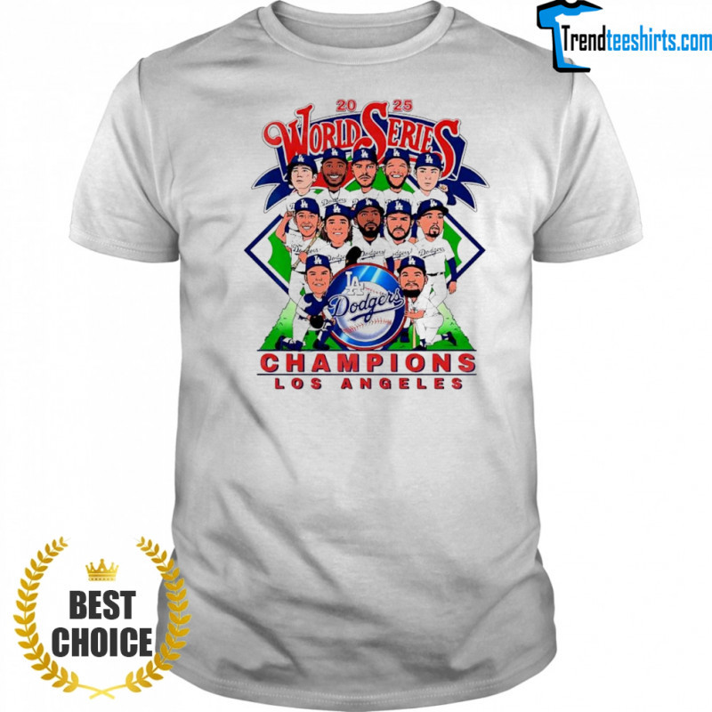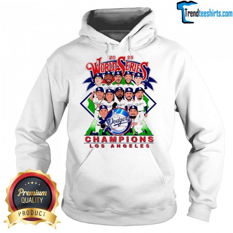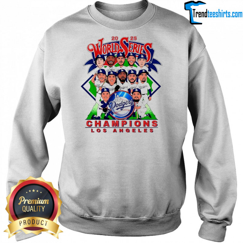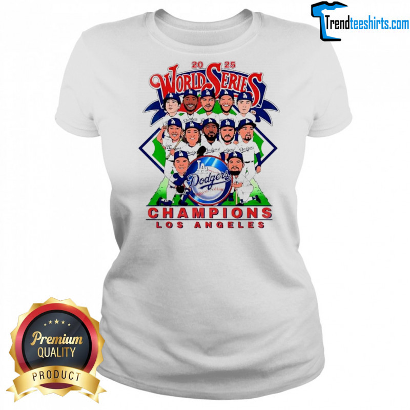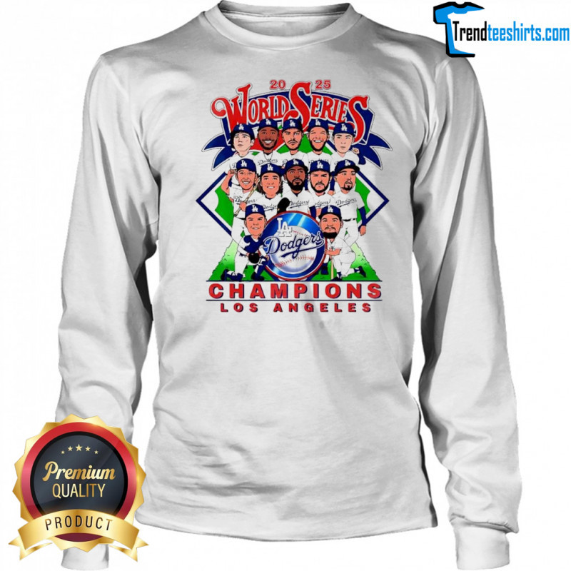 Buy here: World Series Champs 20256 Los Angeles Dodgers players cartoon caricatures shirt, hoodie, sweater, longsleeve and ladies t-shirt