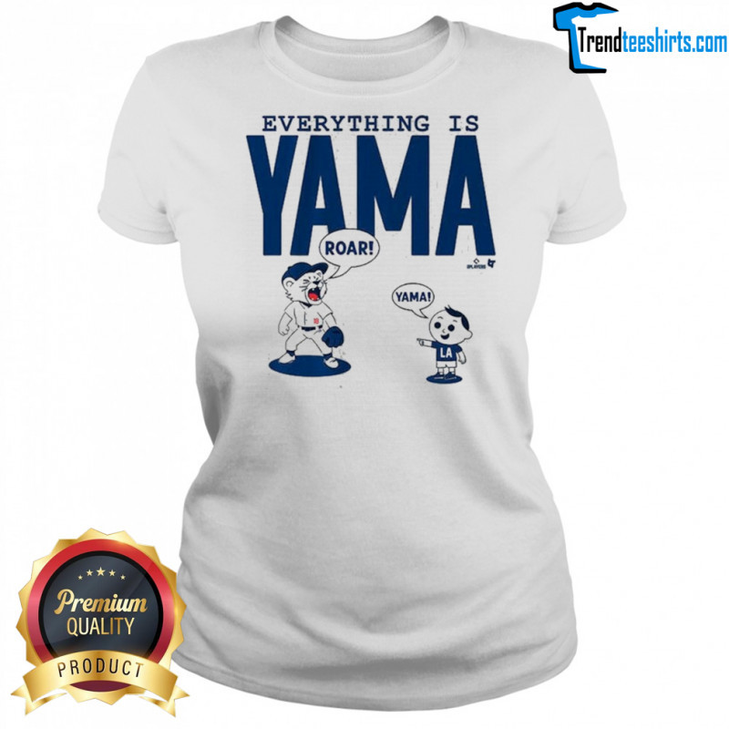 Buy here: Yoshinobu Yamamoto Everything Is Yama Roar Los Angeles Dodgers 2025 World Series Champions T-shirt, hoodie, sweater, longsleeve and ladies t-shirt